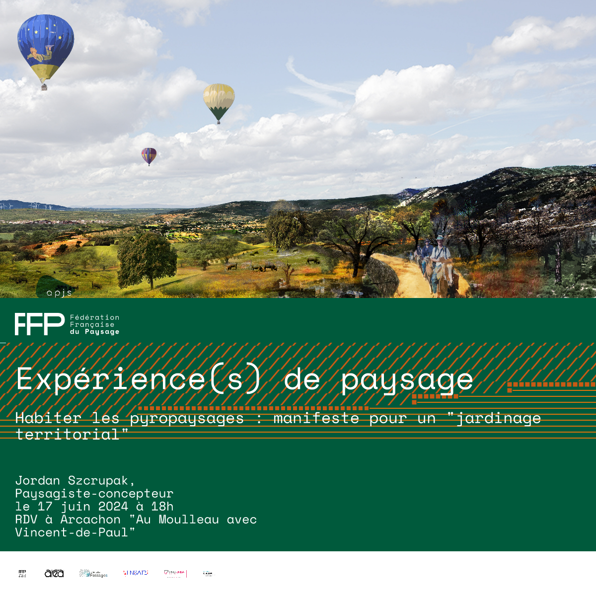 Conférence-débat dans le cadre des Expérience(s) de paysage avec Jordan Szcrupak, paysagiste concepteur et enseignant à l’ENSA Marseille IMVT – Institut méditerranéen de la Ville des Territoires et administrateur de l’association forêt méditerranéenne, le 17 juin 2024, Arcachon, Au Moulleau avec Vincent-de-Paul. Un événement co-créé avec la FFP Nouvelle-Aquitaine, avec le soutien de Pro Urba et Aréa.