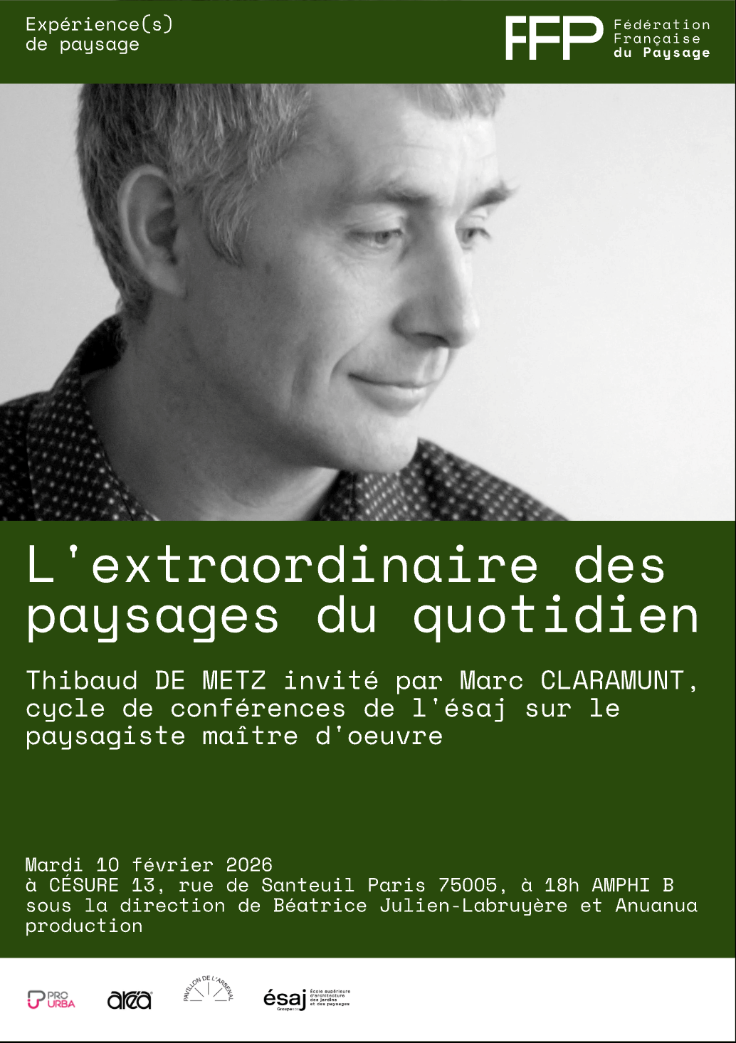 Thibaud de Metz invité par Marc Claramunt, dans le cadre du cycle de conférences de l’Ecole Supérieure d’Architecture des Jardins et des Paysages (ESAJ) sur le paysagiste maître d’œuvre