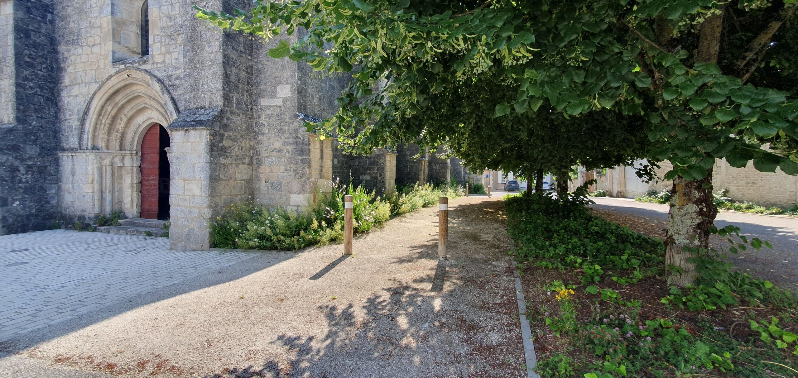 La végétalisation des pieds de murs, prônée par les ABF est systématisée dès que possible, elle adoucit le contact des bâtiments avec les sols et accompagne une lecture plus rurale, plus champêtre de ces places de villages.