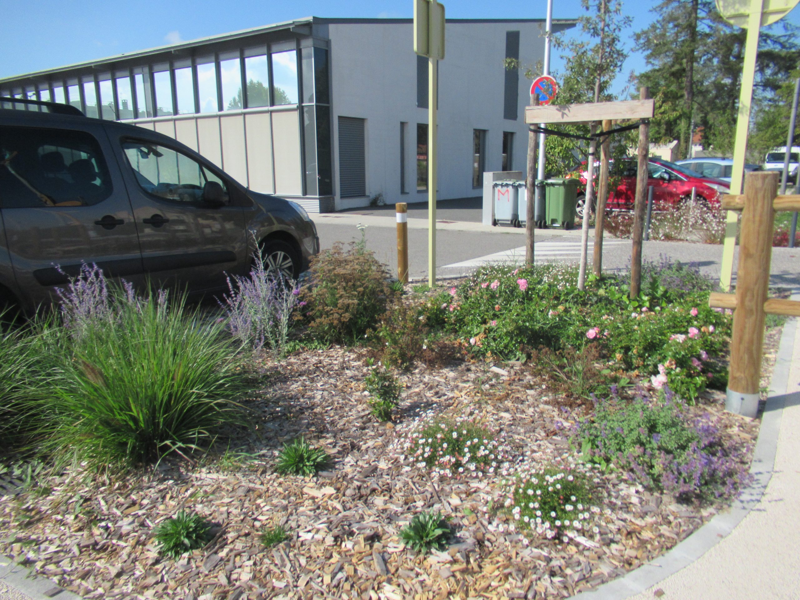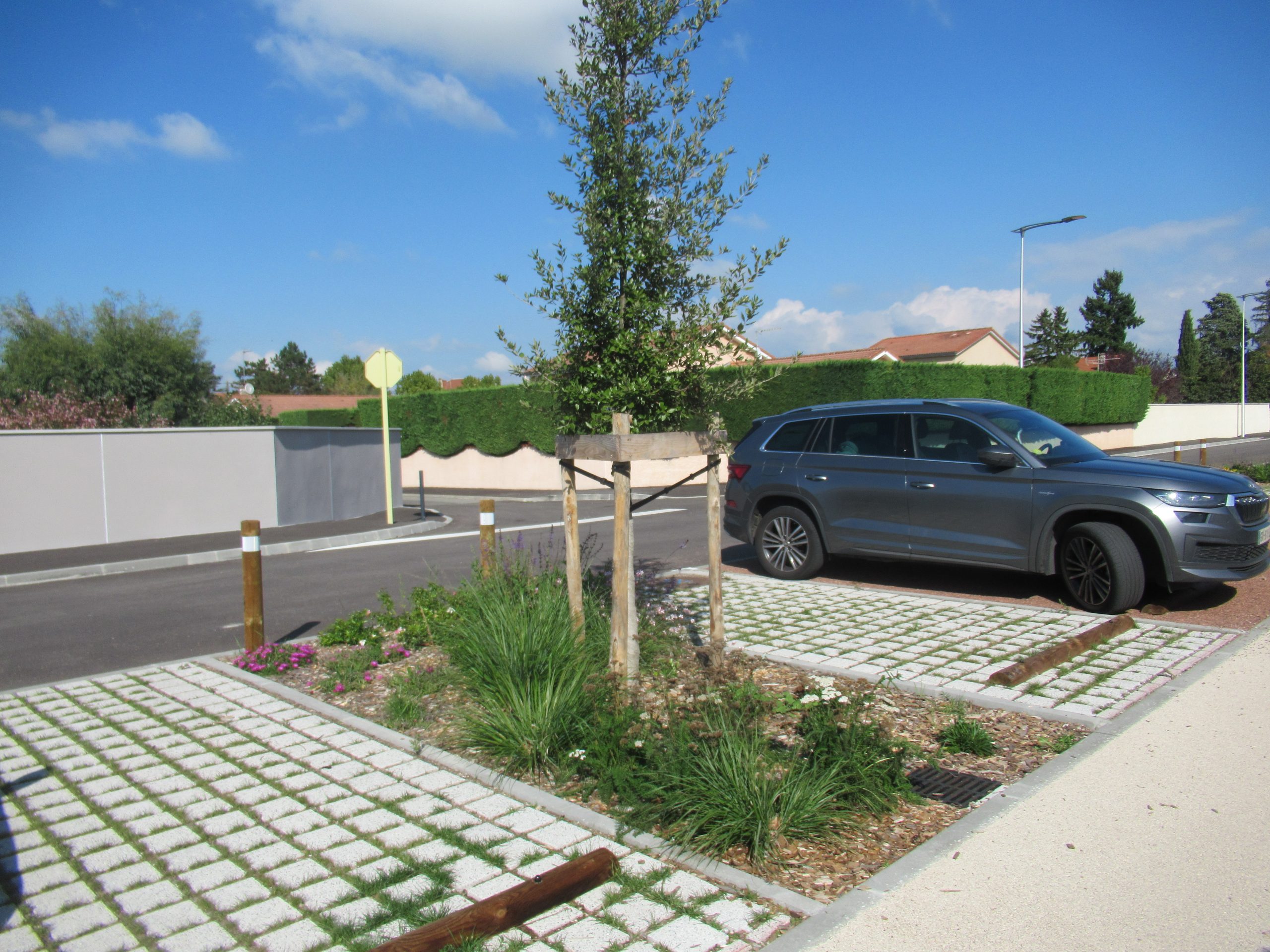 Organisation du stationnement selon la fréquentation variable et mise en valeur de la voie verte pour favoriser les déplacements modes doux.