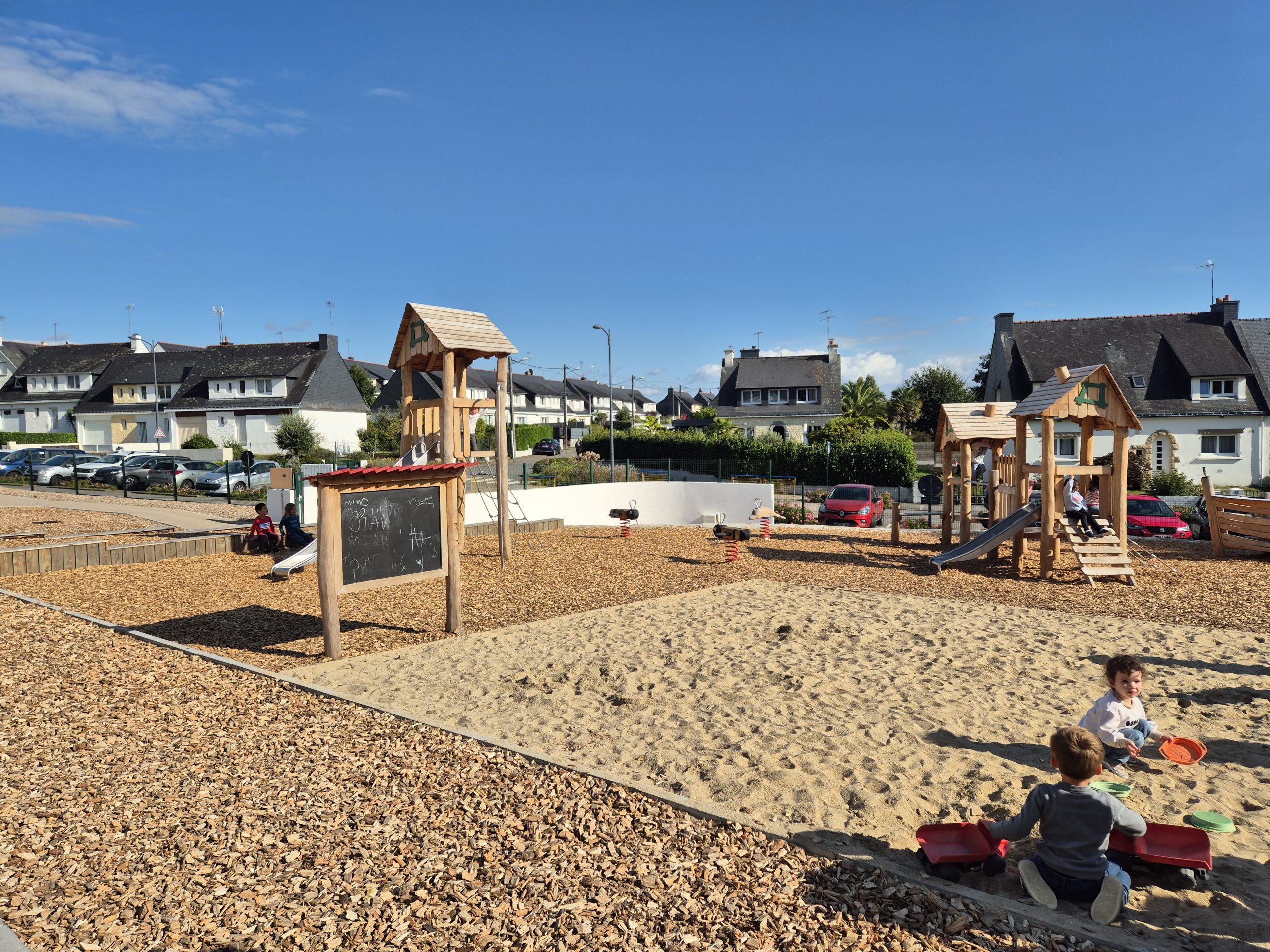 La commune souhaite mettre en avant un aménagement structuré autour de zones de jeux actifs, de jeux calmes et d’espaces d’imagination. L’objectif est de maximiser l’utilisation de l’espace disponible tout en créant des environnements variés pour différentes activités physiques et éducatives. La cour est organisée pour encourager la socialisation, le développement physique et l’apprentissage pratique.