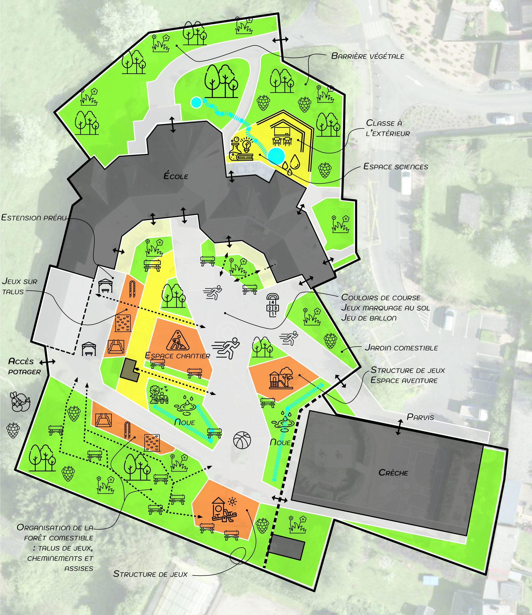 En remplaçant le bitume par des îlots de verdure, nous offrons aux élèves un espace de jeu, d’apprentissage et de connexion avec la nature. Chaque arbre planté, chaque buisson installé et chaque sol perméable contribuent à une meilleure qualité de l’air, à une biodiversité urbaine enrichie et à un environnement plus résilient face au changement climatique. Plus qu’un simple espace de détente, cette cour devient une véritable salle de classe à ciel ouvert, favorisant la créativité, la concentration et le bien-être de tous. Ce projet transforme un lieu de pause en un lieu de vie.