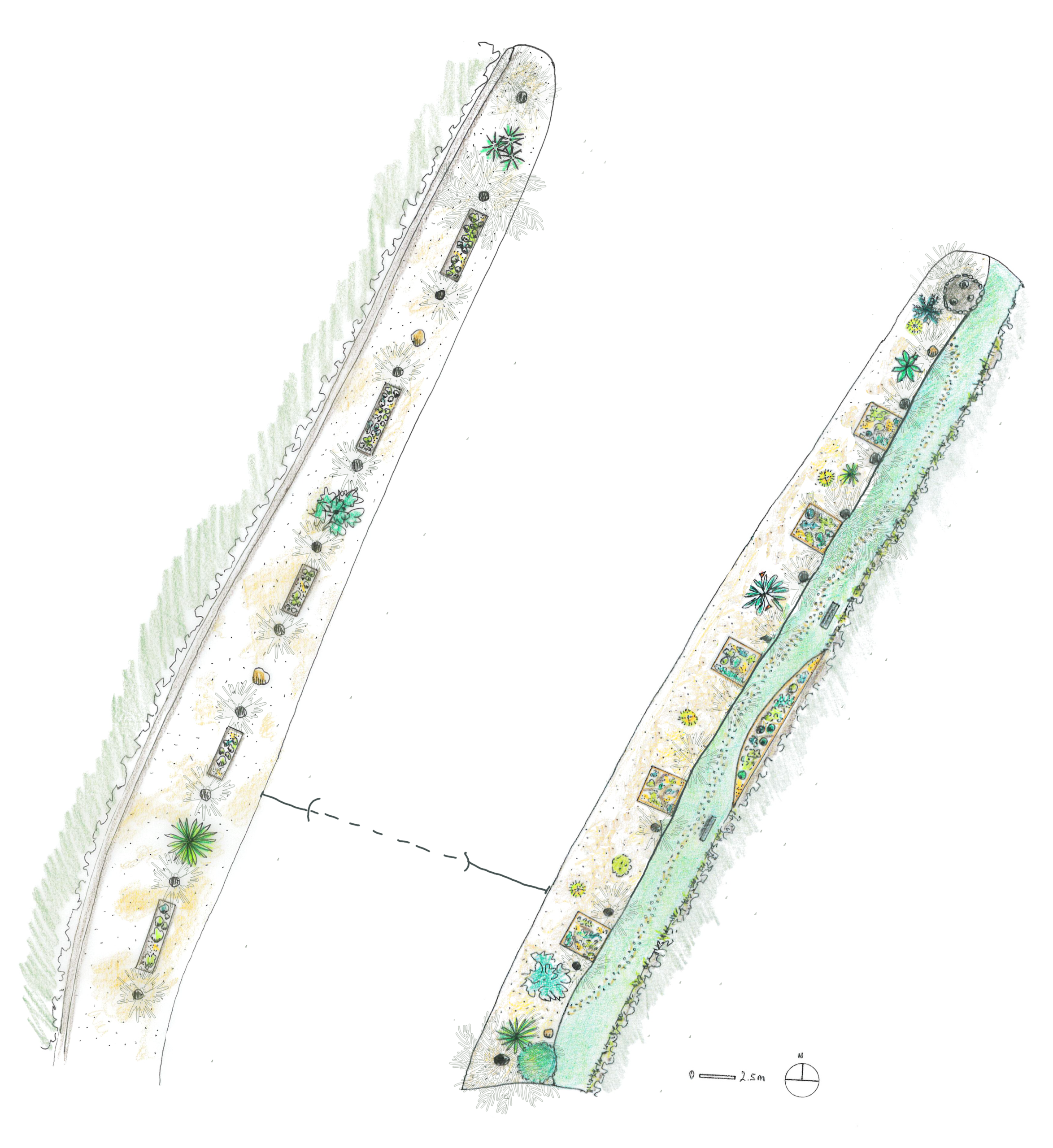 Le gazon synthétique est découpé, les jardinières viennent mettre à l’abris les plantations.